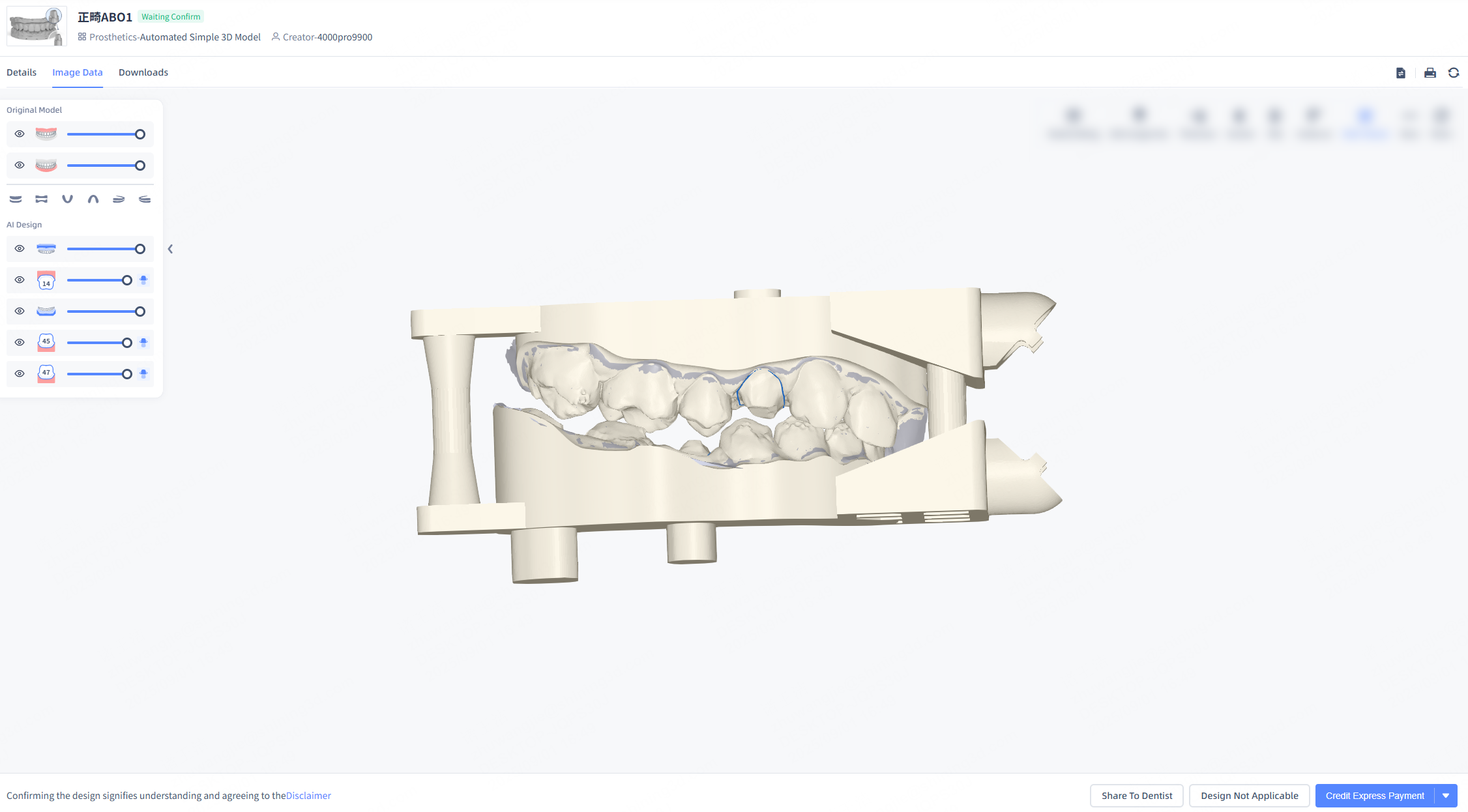 | Share to Dentist | Click this button to send the current design link to the dentist's email for review. |