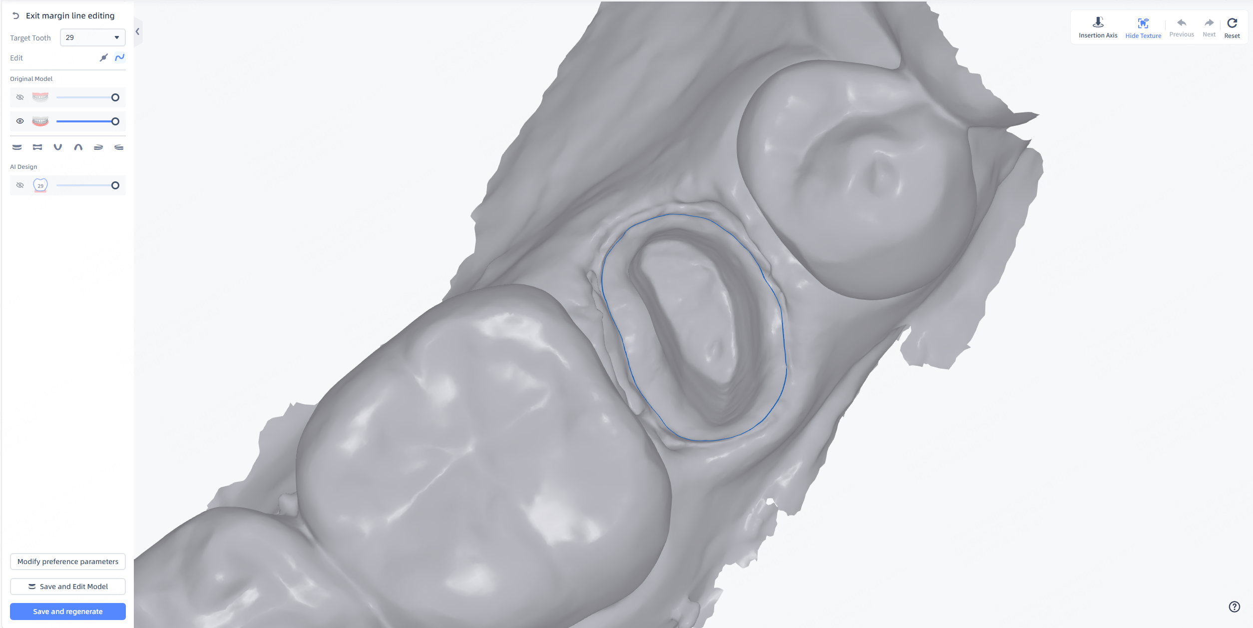 The margin line wraps the range of the crown and editing the margin line changes the range of the crown. You can adjust the margin line to modify the range.