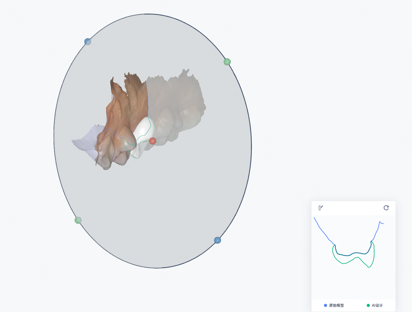 - Move the section: Hold and drag the red ball at the center of the section to move it along the dental arch.