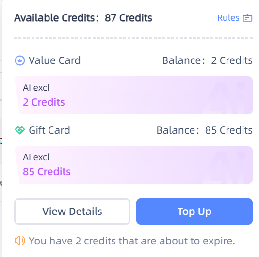 | Value Card | The total number of credits obtained from recharging. You can contact your local dealer to recharge and redeem credits. | |