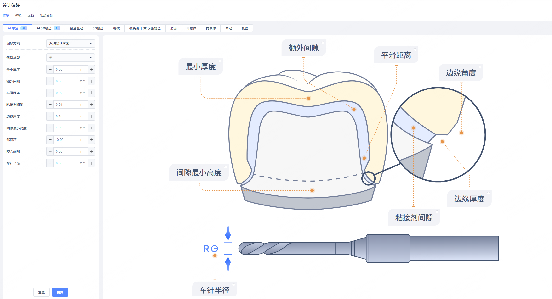 - 选择需要添加偏好方案的设计类型(每种设计类型均可设置多偏好方案)。