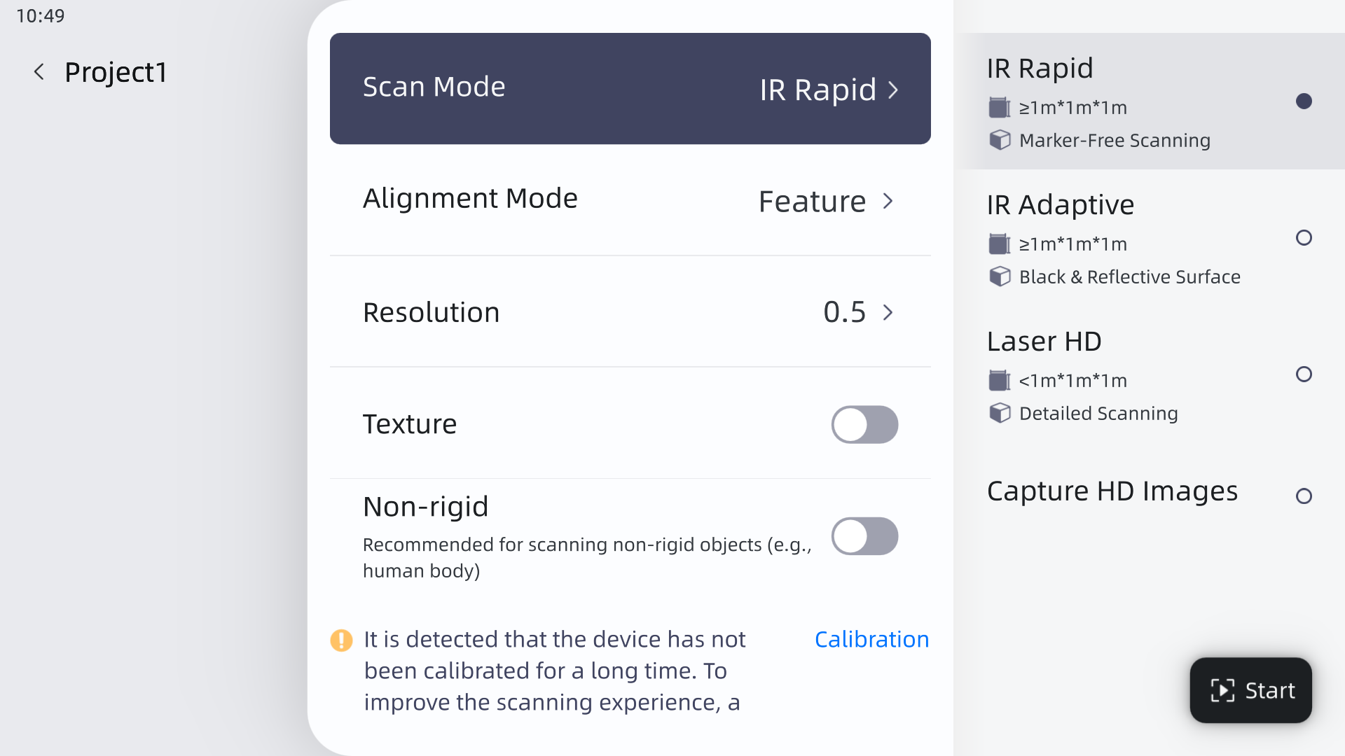 - When scanning non-rigid objects (such as a human body), it is recommended that you enable Non-rigid.