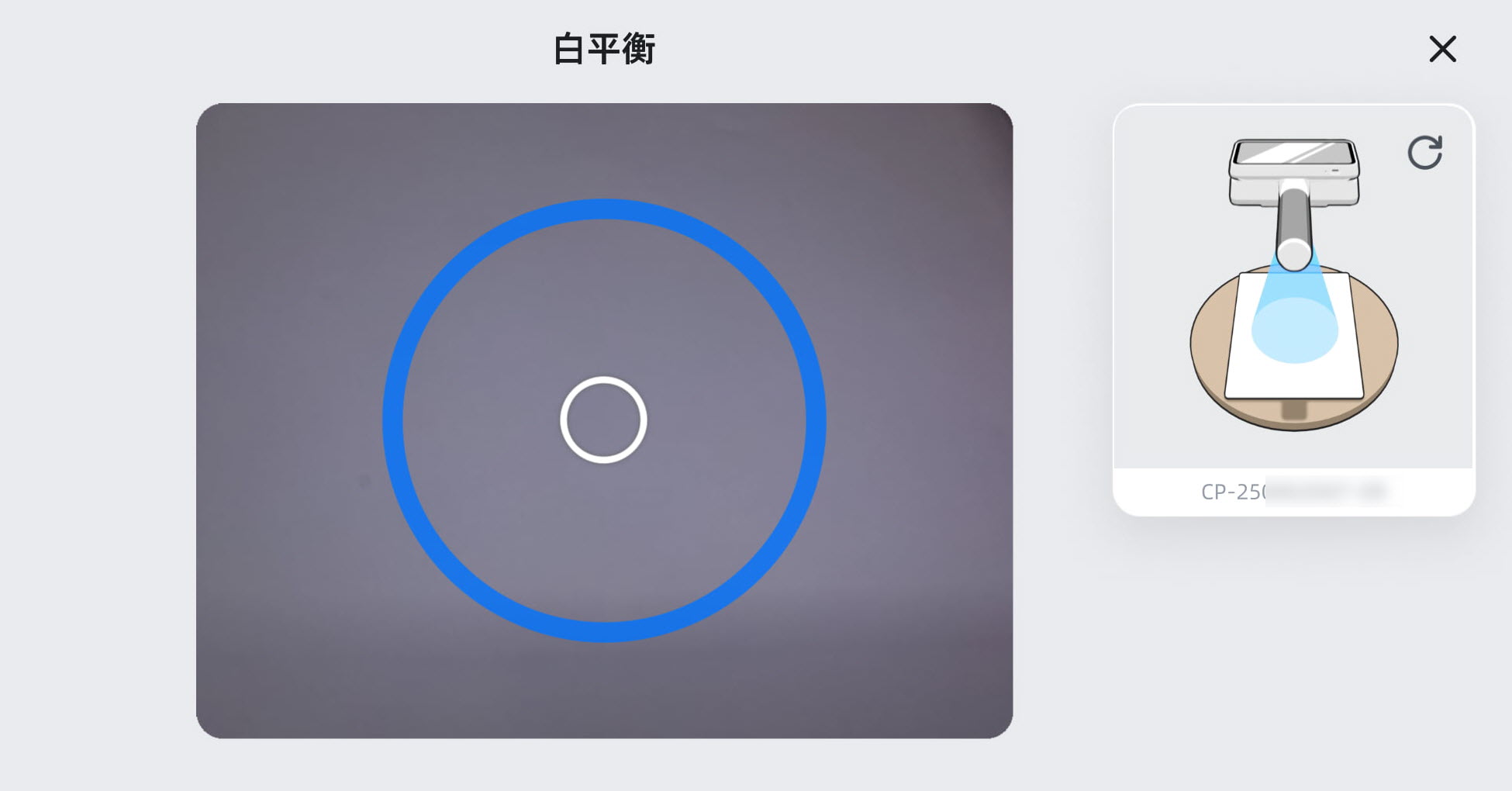 - 垂直平面上下移动扫描仪,使屏幕上的白色圆圈与蓝色圆圈全重合。