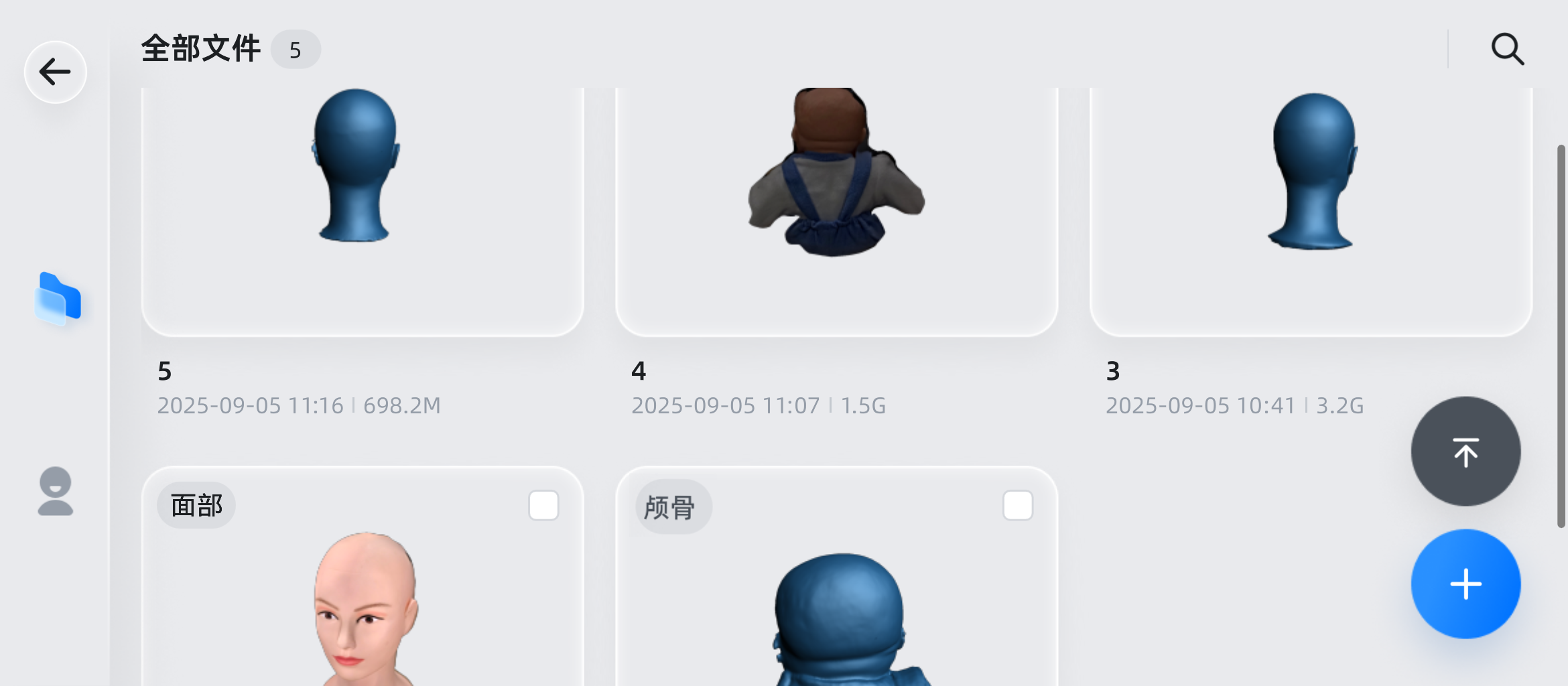 以卡片的形式展示所有已保存的模型文件,按照文件更新时间倒序排列;轻触该卡片即可打开该工程并进入后处理界面。