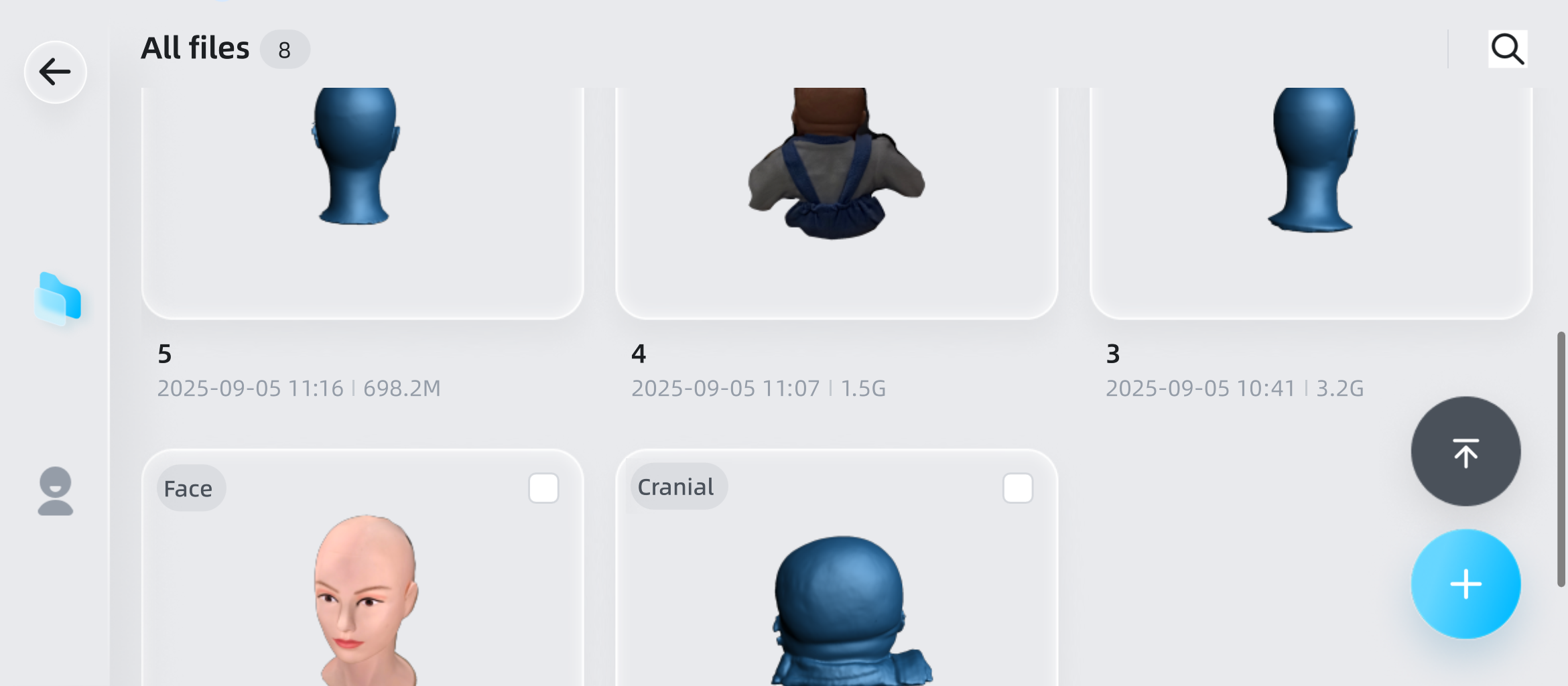 All saved model files are displayed in the format of file cards, which are sorted by file update time in descending order.