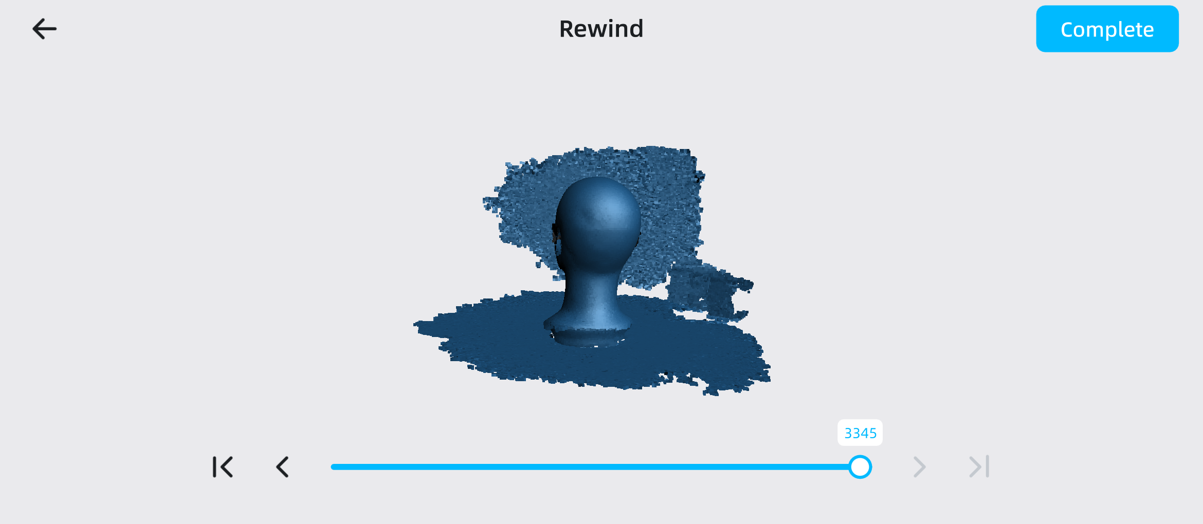 - Check the data again by panning, rotating, and zooming. If the data has been rewound to a normal state, tap Complete to delete the data after the current frame and return to the scan interface.