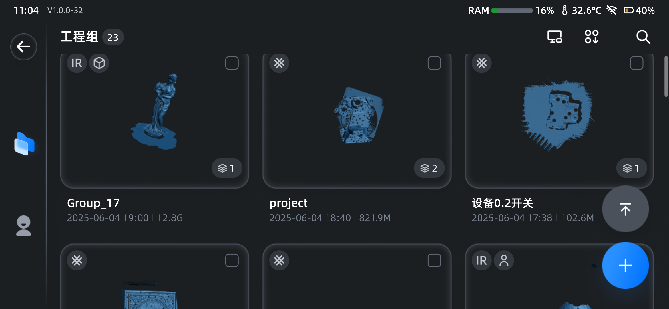 - 轻触某工程文件的卡片即可进入该扫描工程的后处理流程。