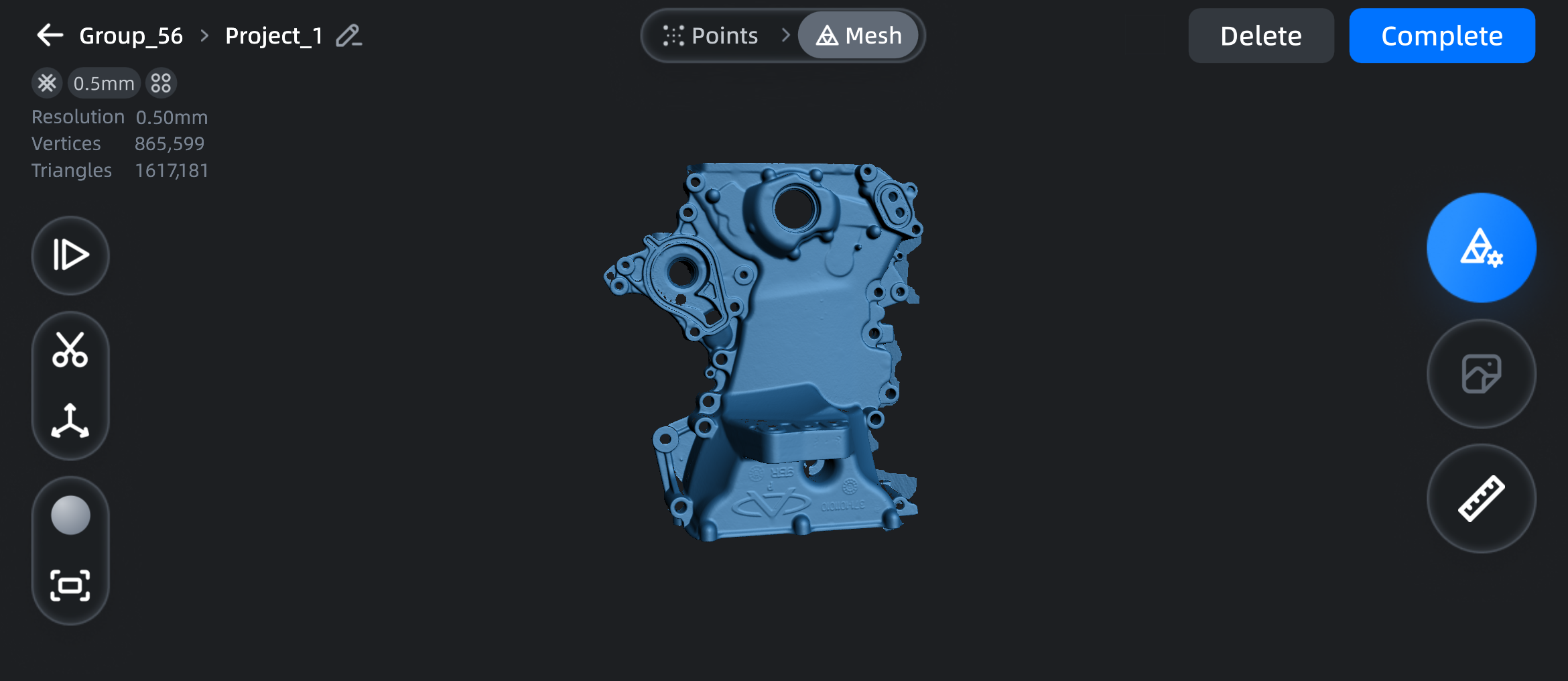| Tippen Sie auf die entsprechende Schaltfläche, um die aktuellen Daten in Punktwolke oder Netz umzuschalten. | |