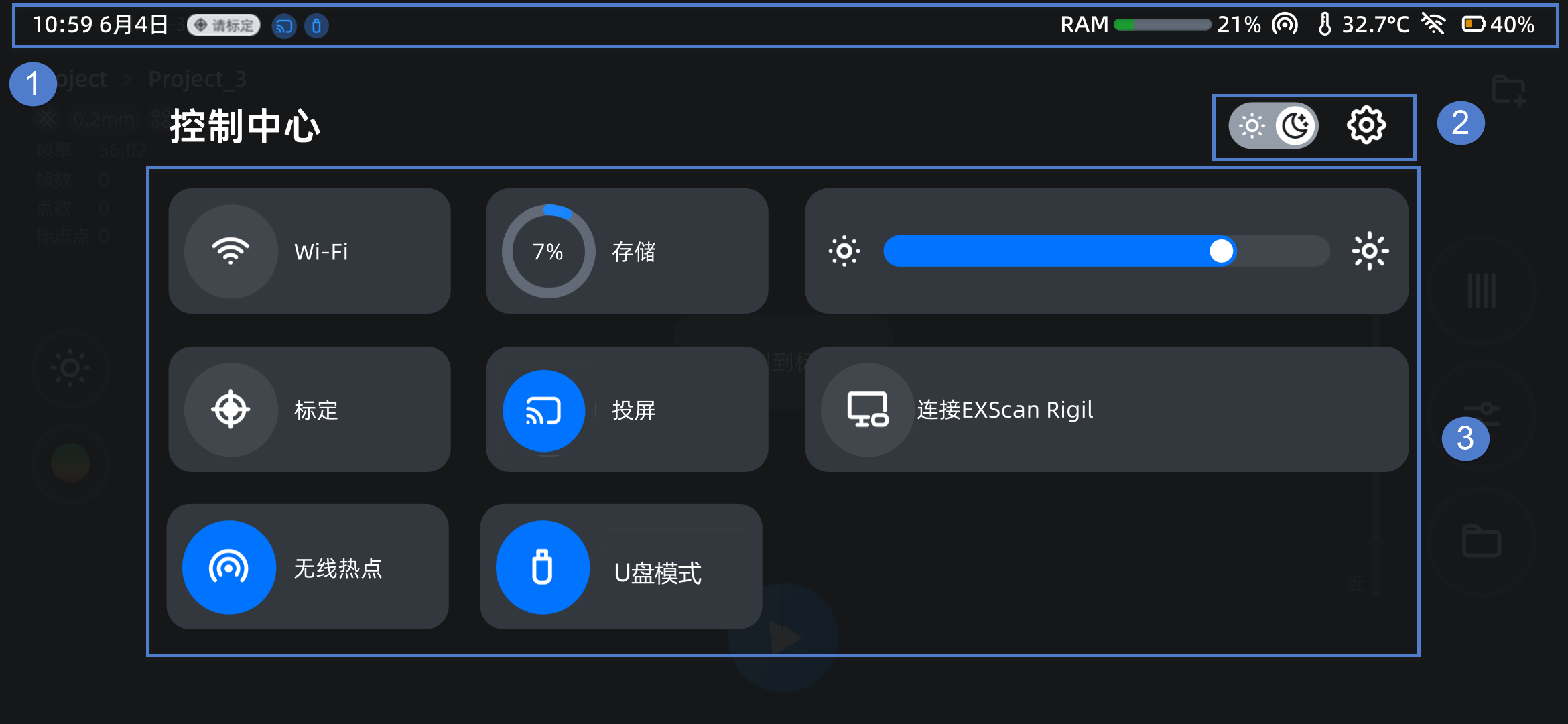 • 若在扫描或标定过程中唤起控制中心,则无法通过轻触控制中心的按钮进行相应跳转。