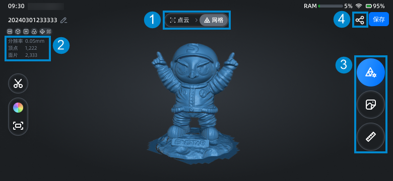 | 将网格模型分享至先临云,具体请见保存与分享。 |