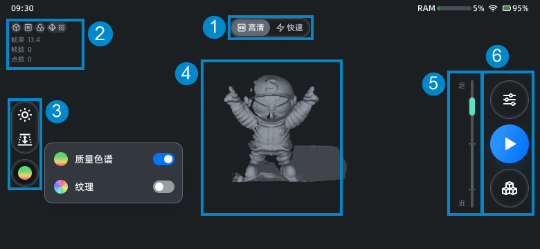 :高清扫描(默认),主要用于扫描小型物体或具有大量几何细节的物体。
