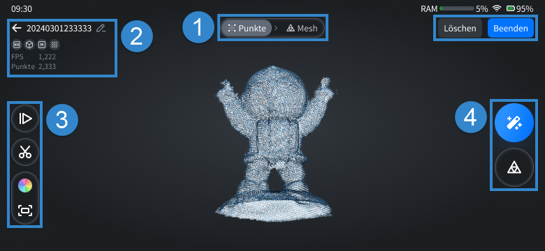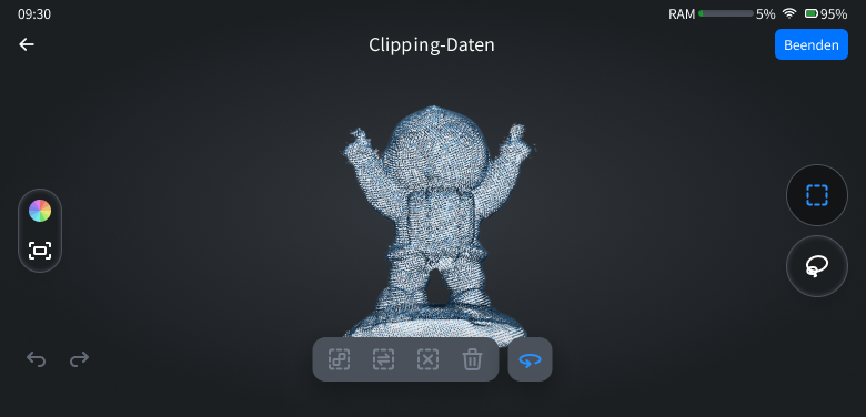 Nachdem Sie das Scannen abgeschlossen haben, können Sie die Punktwolkendaten bearbeiten.