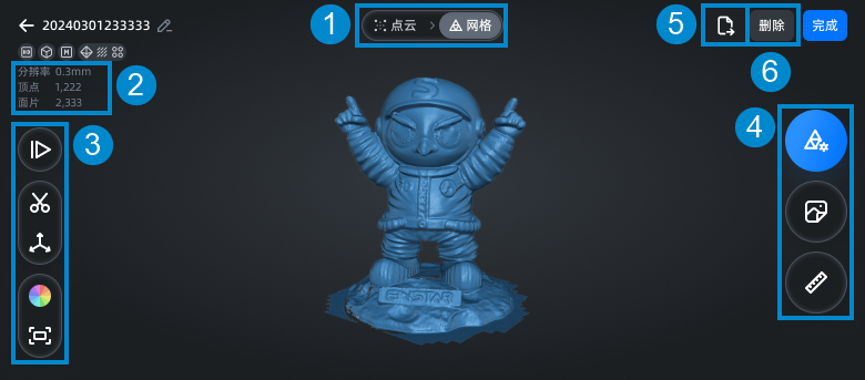 非纹理扫描,无法生成贴图”。 - 支持轻触右上角