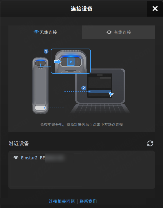 热点名称为 Einstar2_xxx,密码固定为 Einstar2。