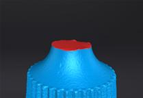 The edge of the hole to be filled is displayed green, and the filled hole is displayed red.