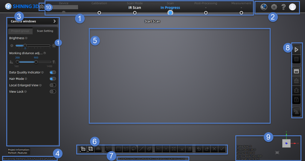- Kamerafenster: Um die tatsächliche Szene während des Scannens anzuzeigen. Parameter können genau über das Kamerafenster angepasst werden.