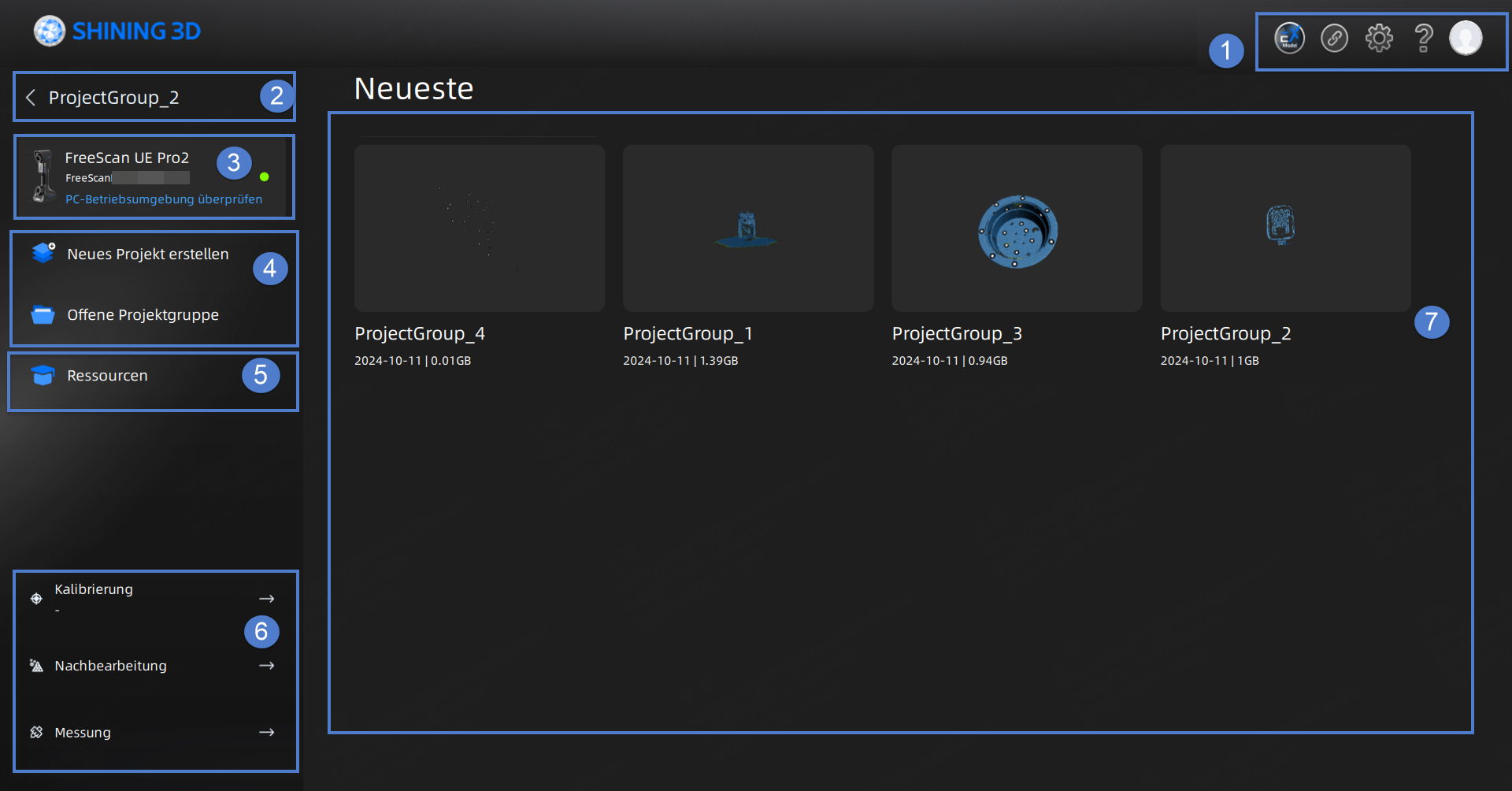 Nachdem Sie die Software ausgeführt und sich angemeldet haben, werden Sie automatisch zum Startbildschirm der Software weitergeleitet. Sie können auf aktuelle Dateien und Links zu Ressourcen zugreifen, Projektgruppen erstellen und schnell zu anderen Benutzeroberflächen springen.