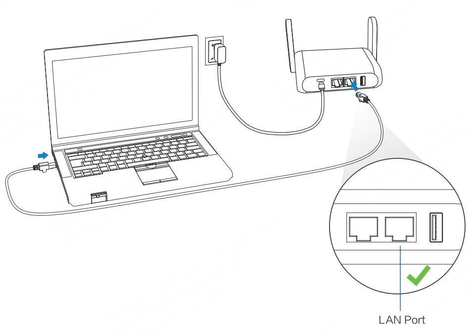 Insert the Ethernet cable into one of the LAN ports (not the WAN port).