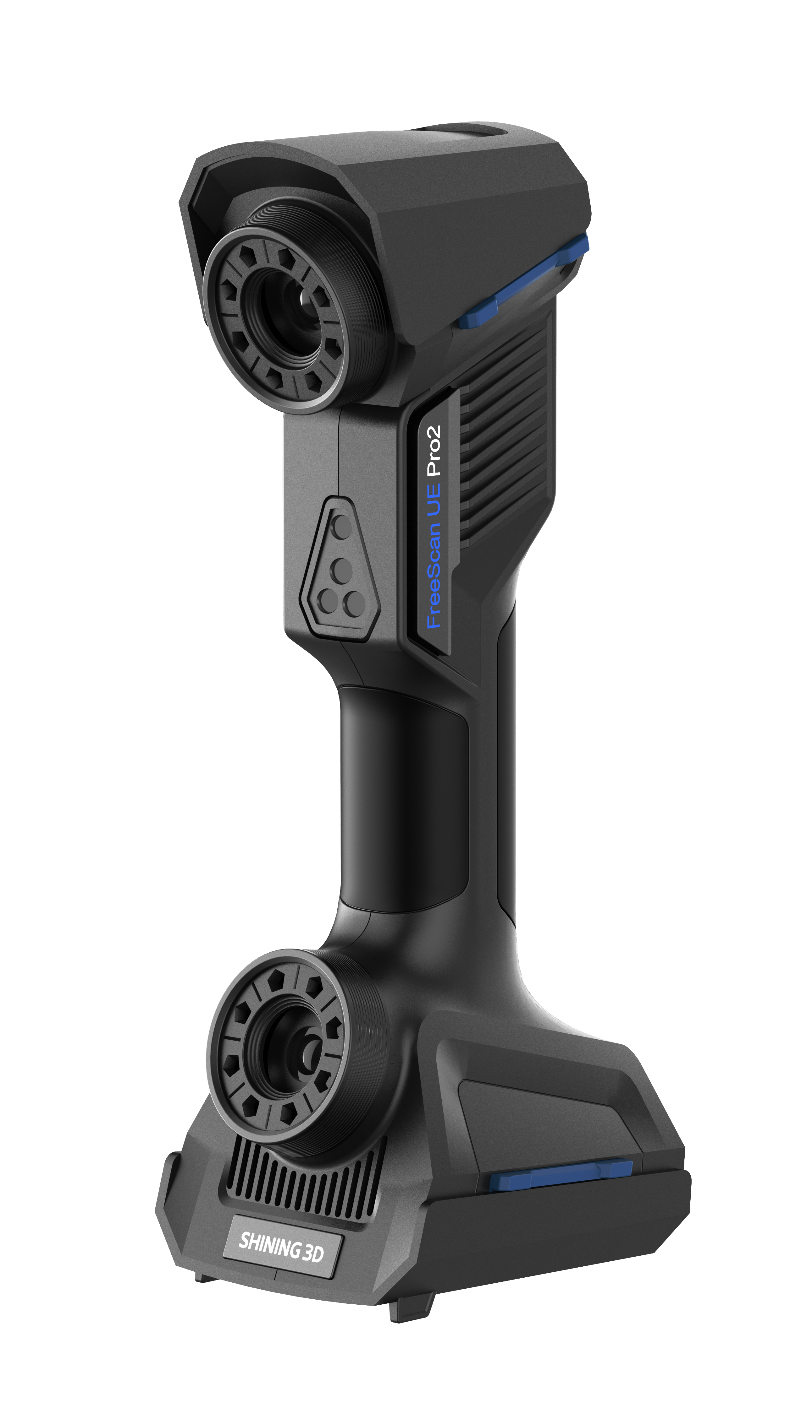 FreeScan UE Pro2 (referred to as the "scanner") is a handheld blue laser 3D scanner independently developed by SHINING 3D Tech Co., Ltd.. This scanner features high-precision scanning capabilities and utilizes an embedded edge computing module to achieve wireless scanning. With a lightweight design of 930 grams and compatibility with various standard specifications of power banks, it revolutionizes the portability of handheld laser 3D scanners, enhancing the overall scanning experience and efficiency.