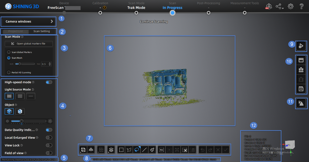 To switch among Scan Mesh, Partial HD Scanning and Scan Markers.
