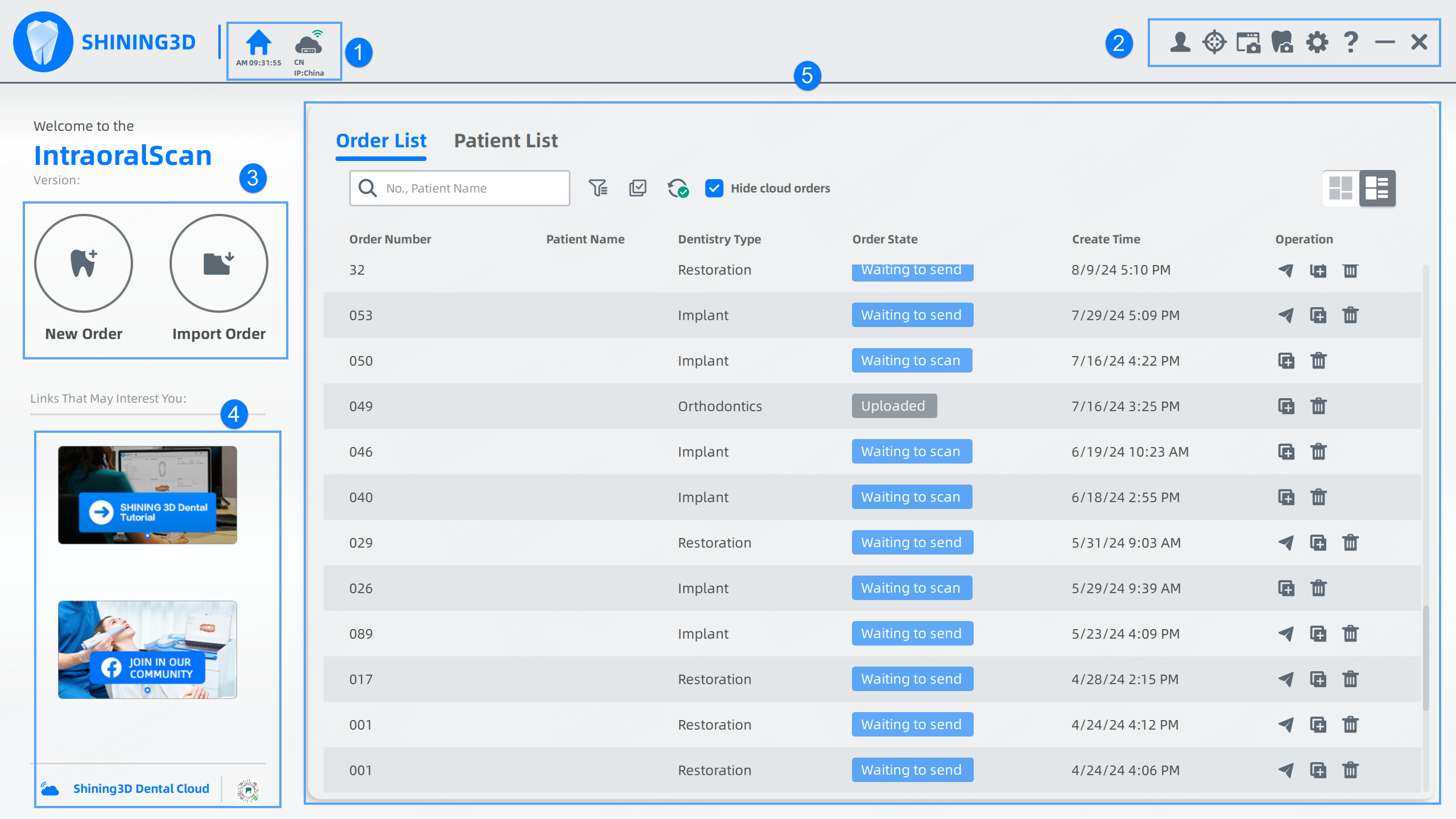 - If you edit the patient information, create new orders or add a patient, the relative information will be synchronized to the cloud when the computer is networked.