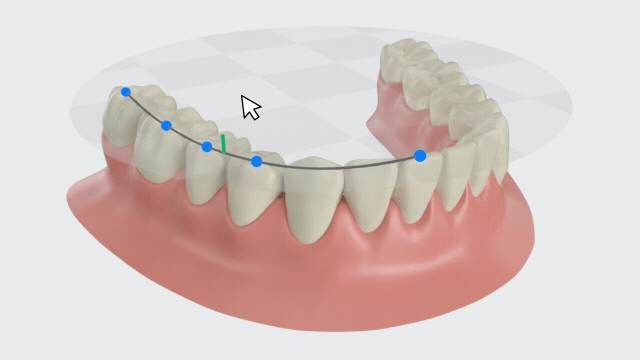 On the panel, you can hold the control point on the dental arch curve and move the cursor to adjust the shape of the dental arch.