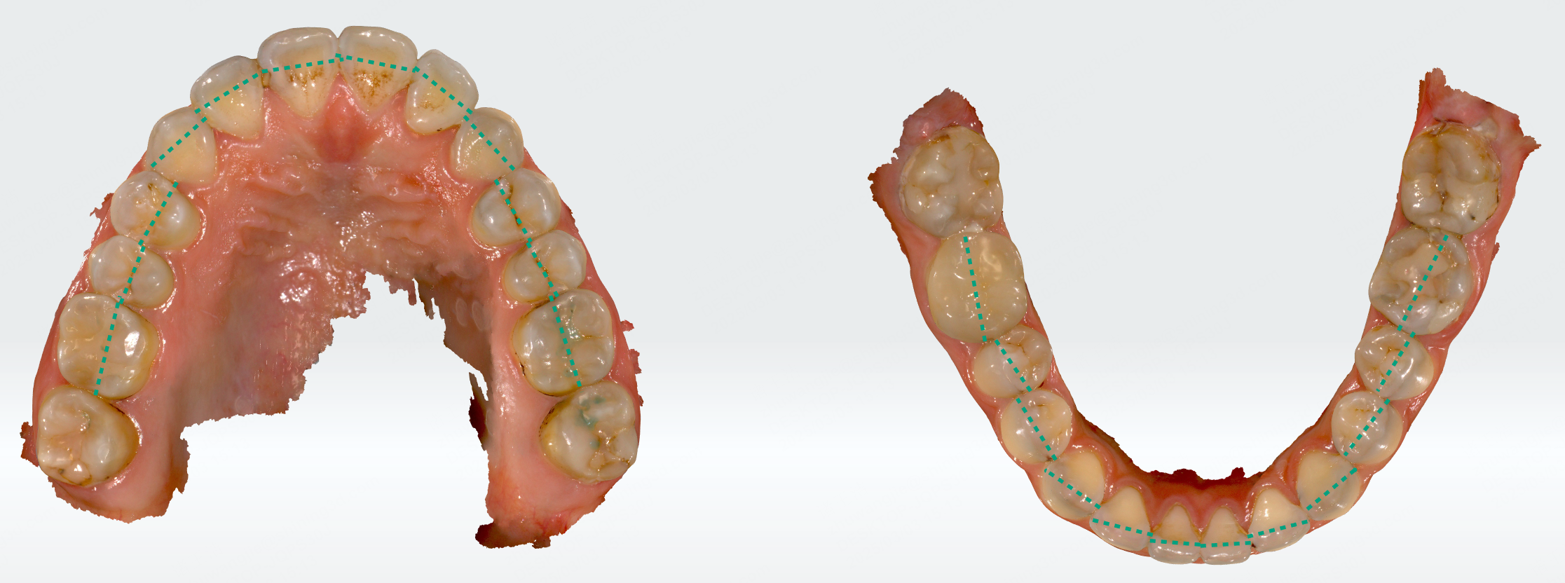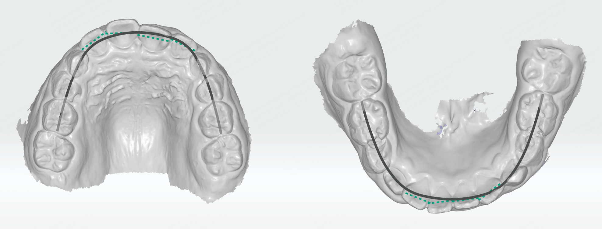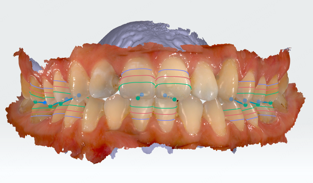 After entering this function, the widths of the upper and lower teeth will be detected and displayed as green dashed lines on the model.