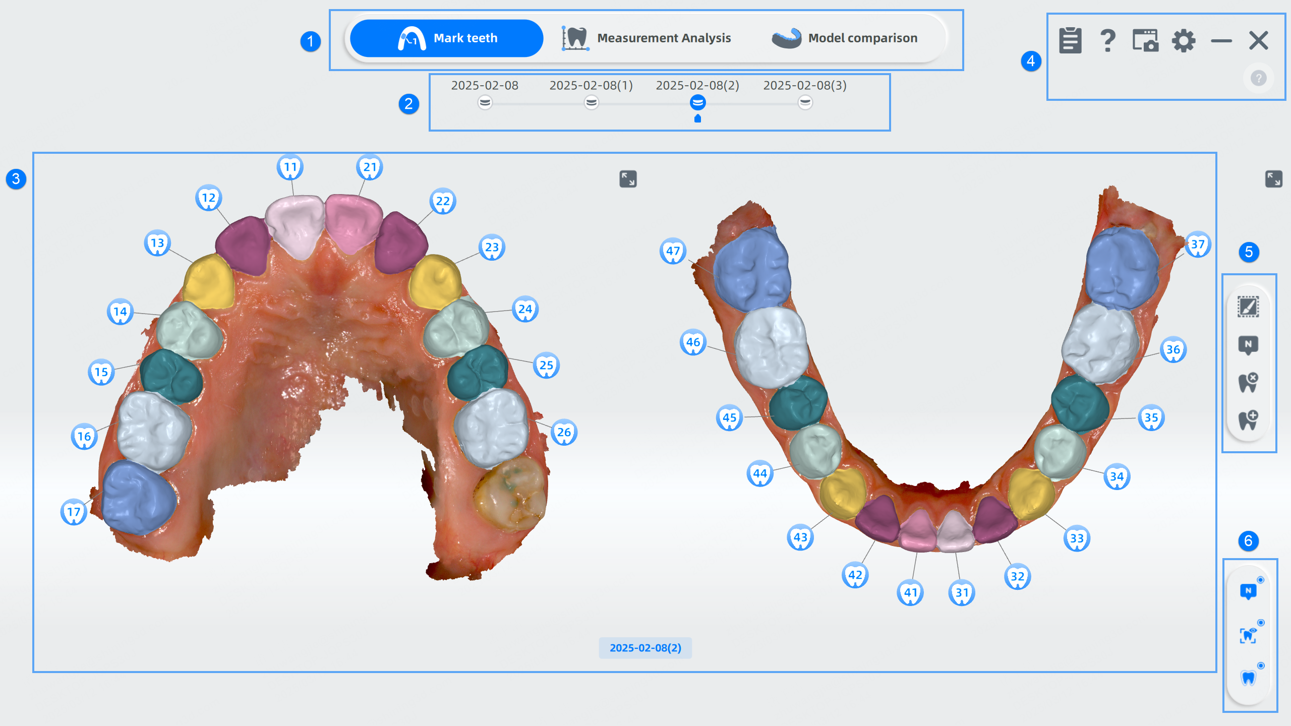 MetronTrack includes Mark teeth, Measurement analysis and Model comparison. You can switch the functions by clicking the icons.