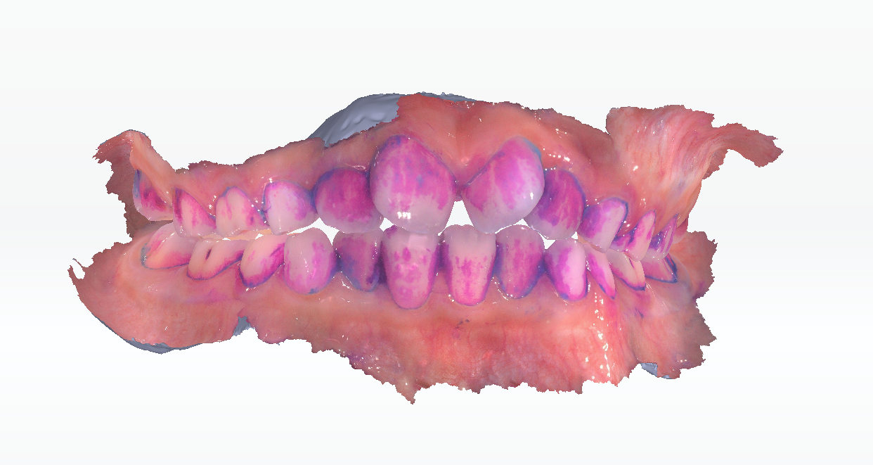 After the plaque is colored, please start scanning. The suggested scanning process is: scanning the upper jaw, the lower jaw, and the bite. Refer to Restoration Scan for more details.