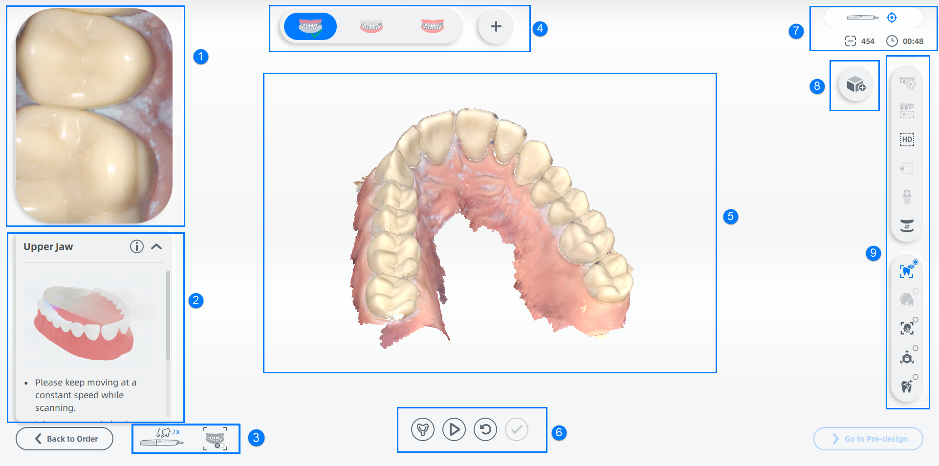 Tools and additional functions can be used for better scanning and previewing the model. More details can be found in Scanning tools and Additional functions.