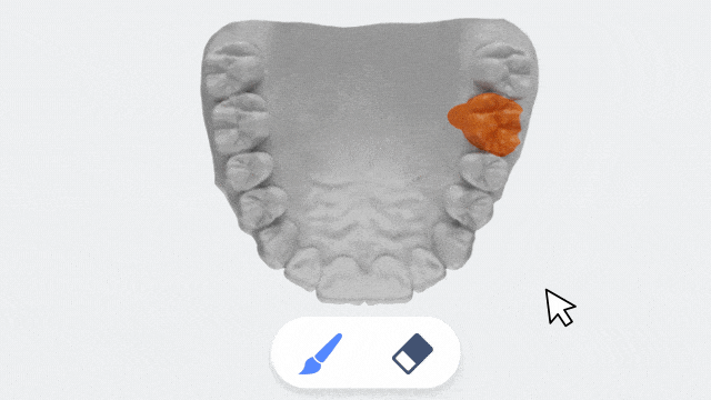 单击笔刷后可对牙齿区域进行涂抹。移动滑条以调整笔刷粗细。 | 橡皮 |