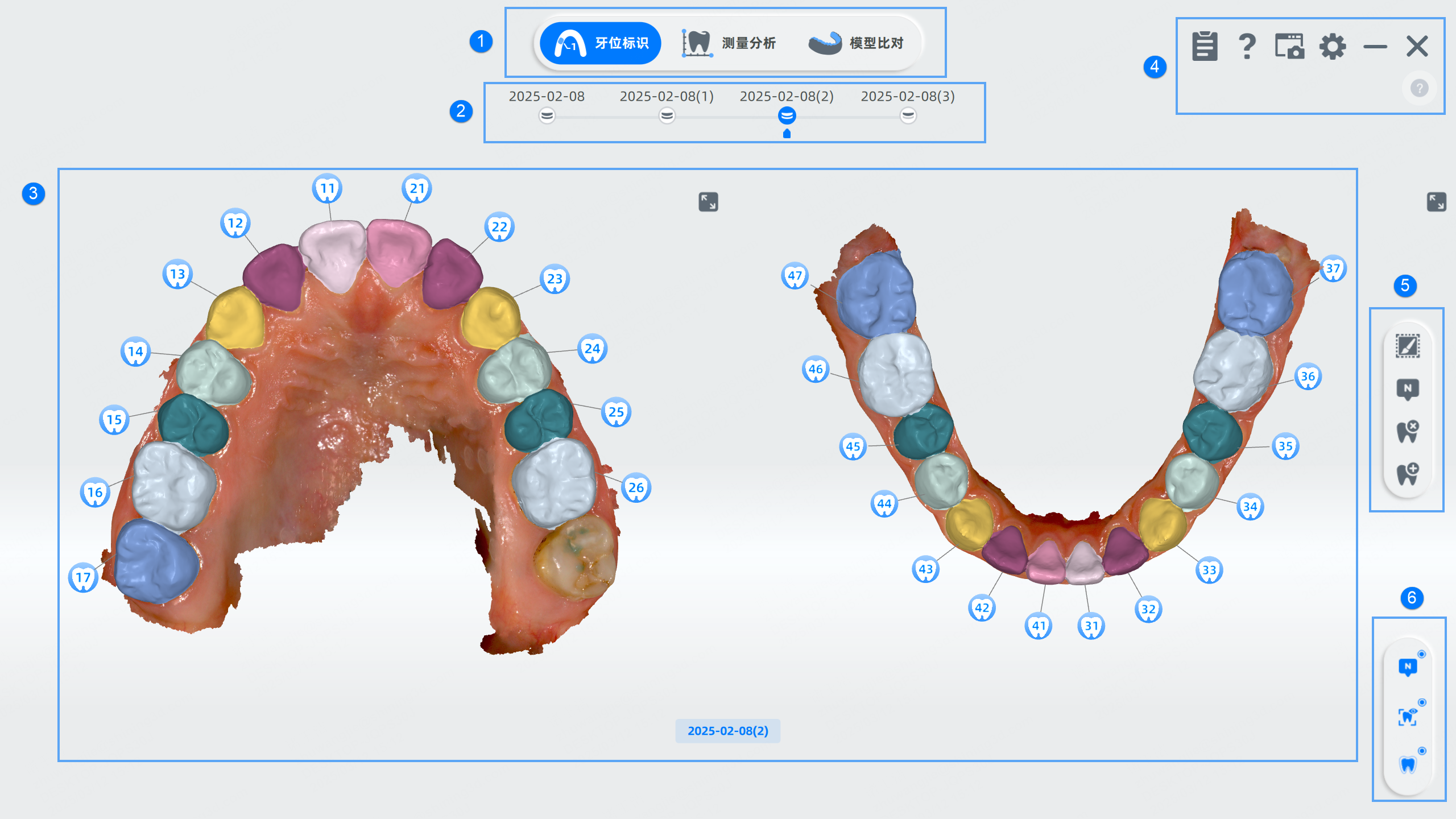 MetronTrack 包括牙位标识、测量分析和模型比对三个功能模块,您可通过单击切换不同功能。