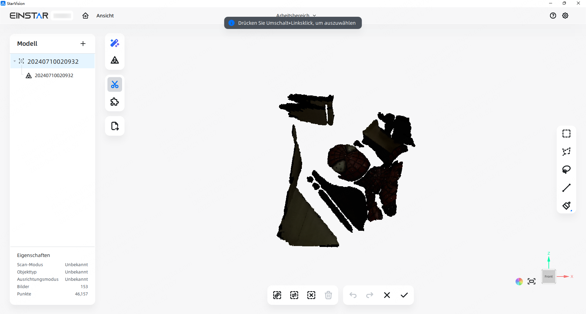 Beim Zuschneiden der Daten können Sie Maus oder Trackpad verwenden, um das Modell zu bedienen.
