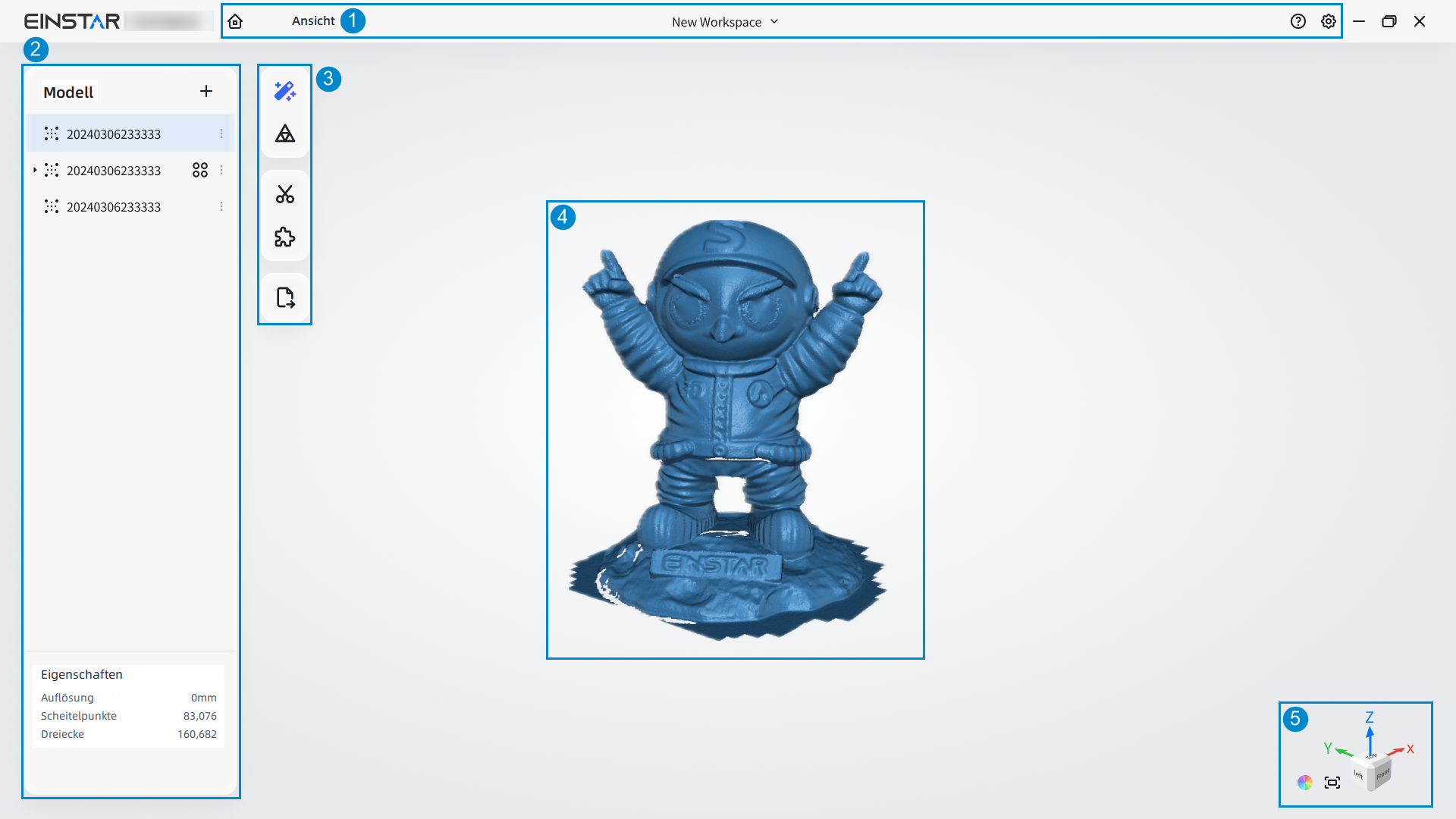 Sie können auch den ⑤ Ansicht-Controller in der unteren rechten Ecke verwenden, um schnell zwischen verschiedenen Modellperspektiven zu wechseln.