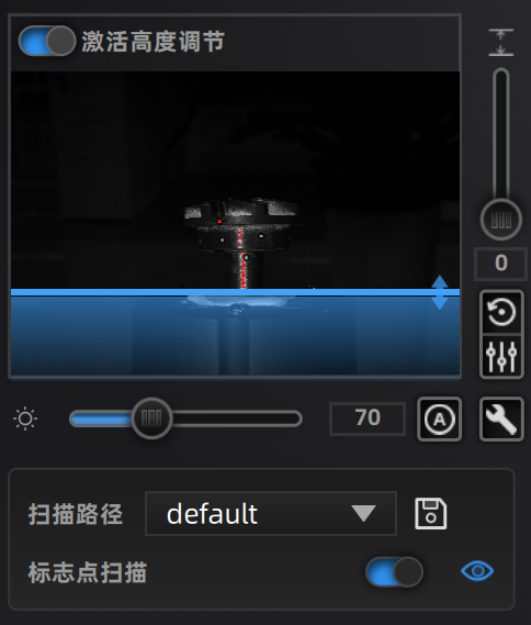 激活高度调节:开启该功能,相机窗口将出现蓝色切割线,切割线以上为扫描的有效区域。