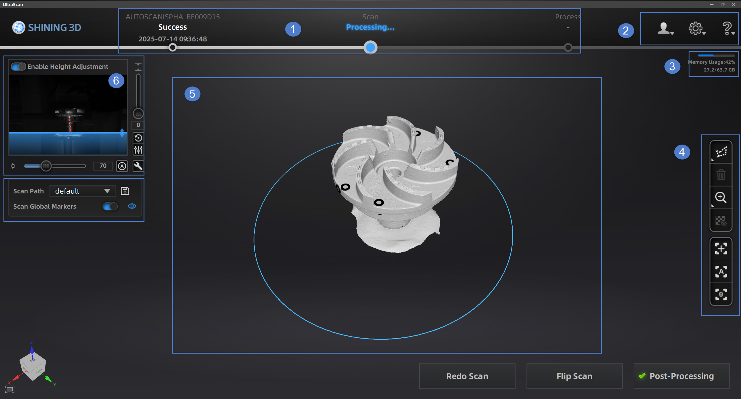 Memory Usage: Information about the amount of computer memory used by the software program. If the program's usage is too high, it is recommended to close other non-scanning software and wait patiently.